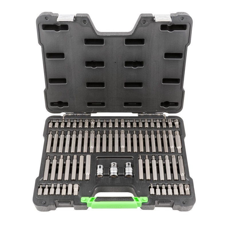 Estuche de 75 puntas para tornillos ribe, 12 caras o xzn, torx, seis caras o allen y torx inviolable cromo vanadio calidad profesional.