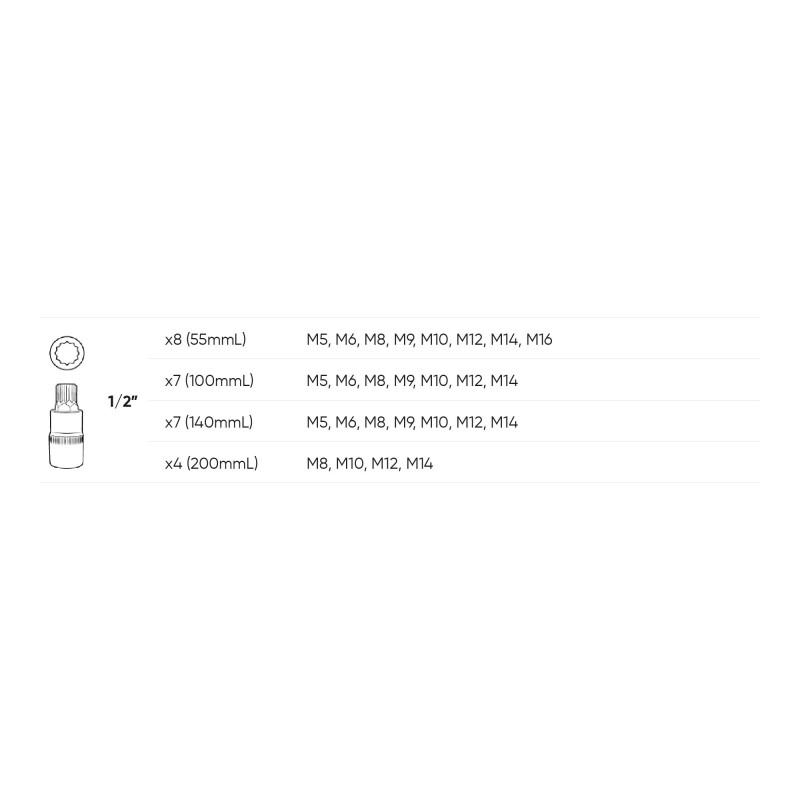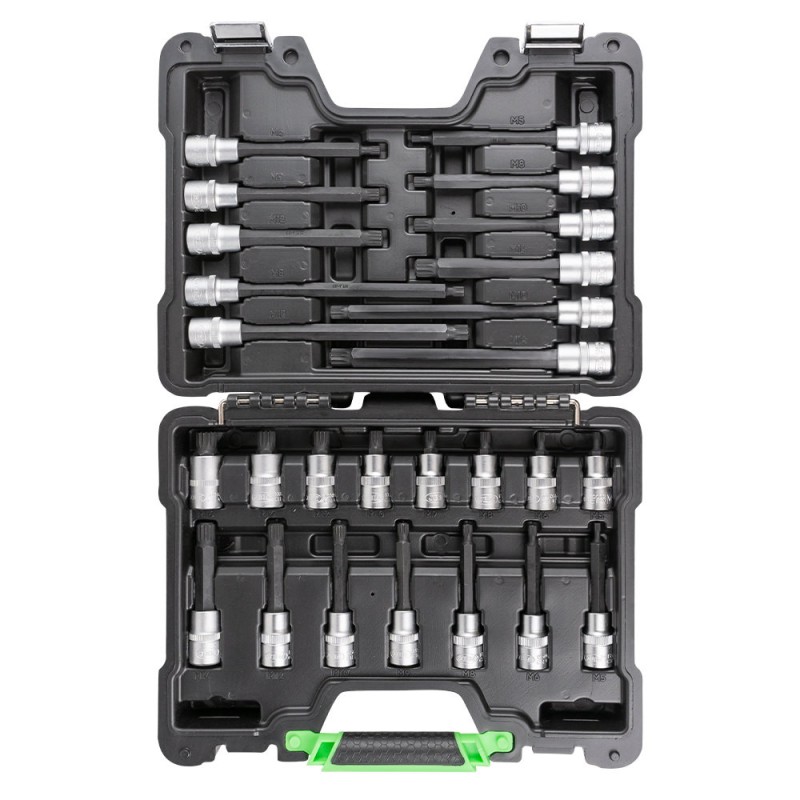 Estuche compuesto de 26 puntas para tornillos de doce caras o XZN, calidad profesional.