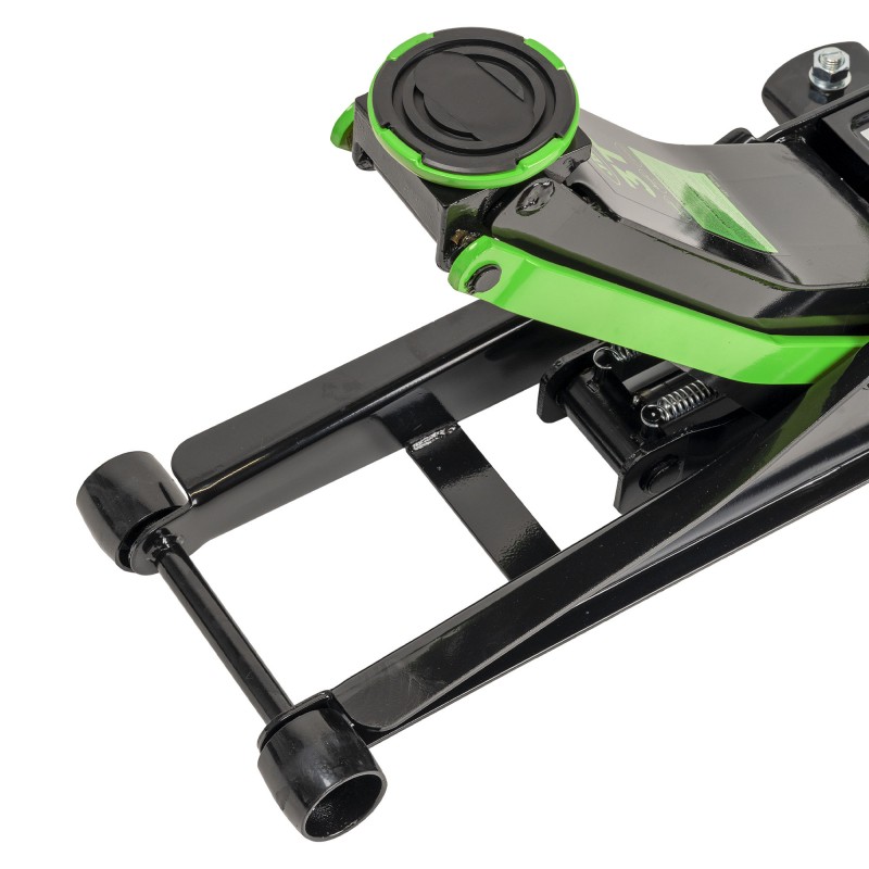 Incorpora tecnología de doble bomba “arranque rápido” para un funcionamiento rápido hasta el punto de contacto, así como un sistema de doble pistón. La válvula de seguridad incorporada protege al gato contra sobrecargas. El sistema de derivación del aceite hidráulico evita que el vástago se sobreextienda.