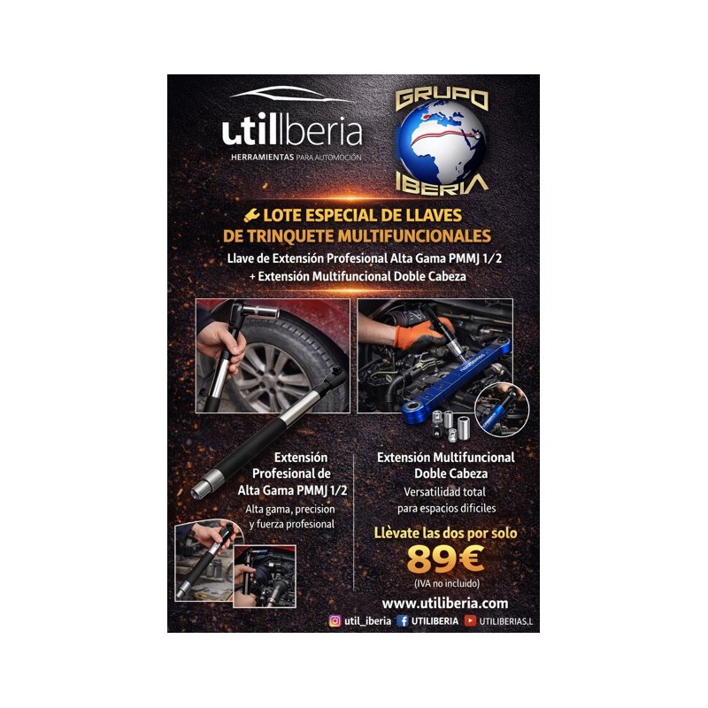 LLAVE DE EXTENSIÓN PROFESIONA ALTA GAMA PMM 1/2 + EXTENSIÓN MULTIFUNCIONAL DOBLE CABEZA