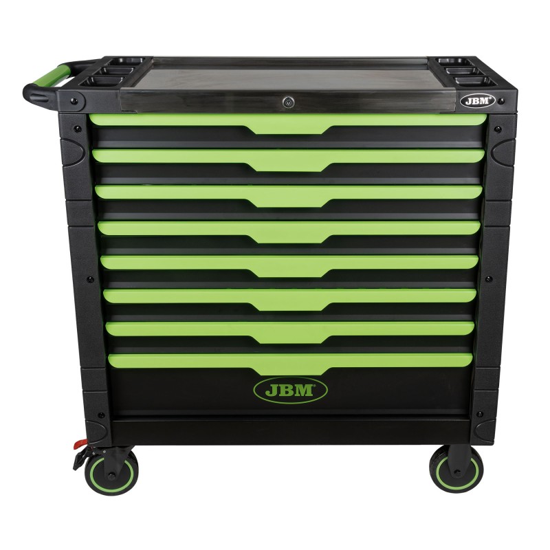Su cierre centralizado garantiza que los cajones permanezcan cerrados de forma segura, evitando aperturas accidentales. La bandeja superior con compartimentos específicos para herramientas y piezas pequeñas te ayuda a trabajar con mayor eficiencia.