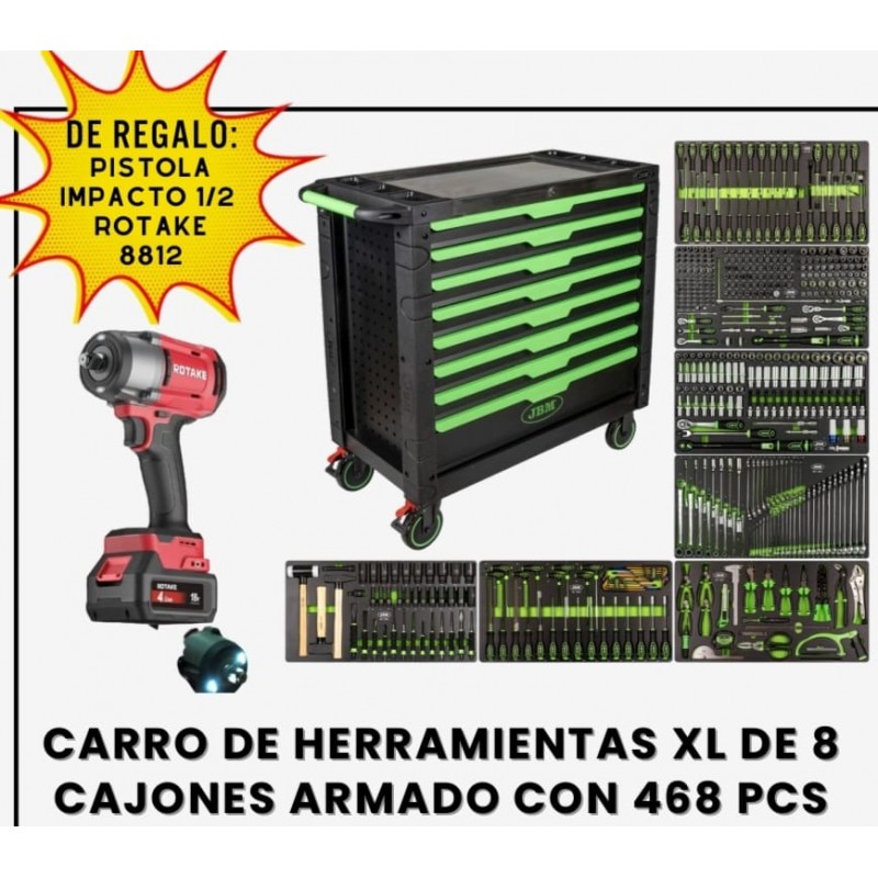 Con ruedas giratorias de 127 mm (dos con freno y dos de 360°), este carro ofrece movilidad y estabilidad. Ideal para optimizar tu productividad y mantener tu taller siempre en orden.