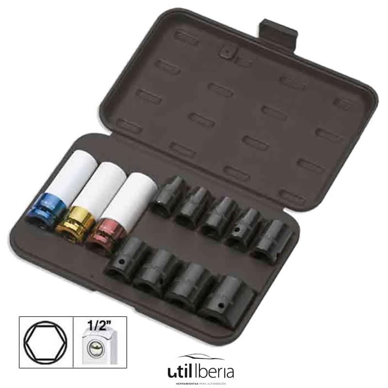 Set de 12 vasos impacto hexagonales de 1/2" especial extracción de ruedas.
